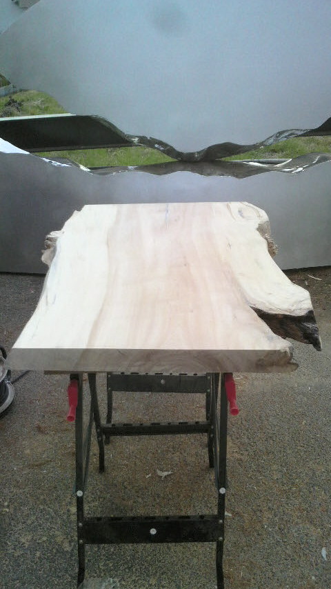 完成した一枚板の天板は、八王子市にある「アート ラ・ヴェリテ」っていうショップに展示いたします。