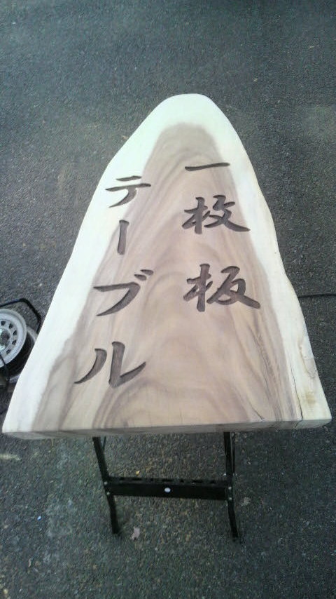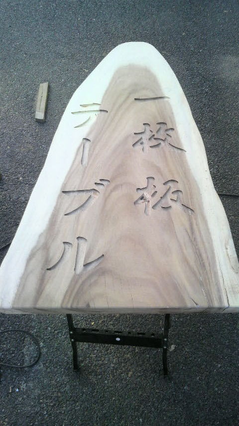 だいぶ字もはっきりしてきましたが、モンキーポッドは色の強い樹種ですので、後3回は重ねて塗らないと字が思うように出ないのです。。。