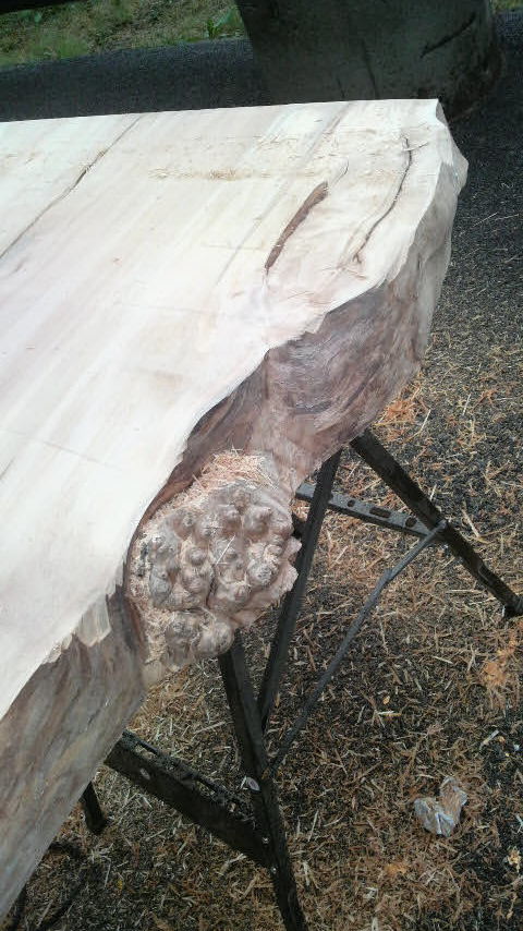 木口部分と白太部分をを少々カットしましたので、サイズダウンしましたがテーブルとして使うには最適なサイズになりました。